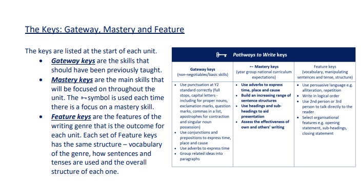 We follow a Mastery approach to English through the programmes of Pathways to Write and Pathways to Read.  Units of work are delivered using high quality texts and children in all year groups are given a variety of opportunities to engage with these texts to achieve a deeper understanding of language for speaking, listening, reading and writing.  Skills are built up through repetition within the units, and children apply these opportunities in the writing activities provided. Many opportunities for widening children’s vocabulary are given through these approaches and this builds on the extensive work we do in school to provide our children with a rich and varied vocabulary.