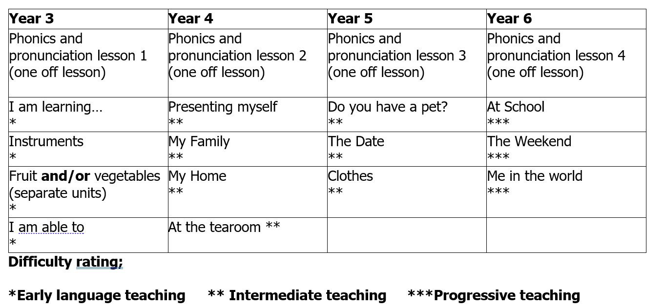 Our French curriculum is planned to demonstrate progression both in core skills and language learning skills.