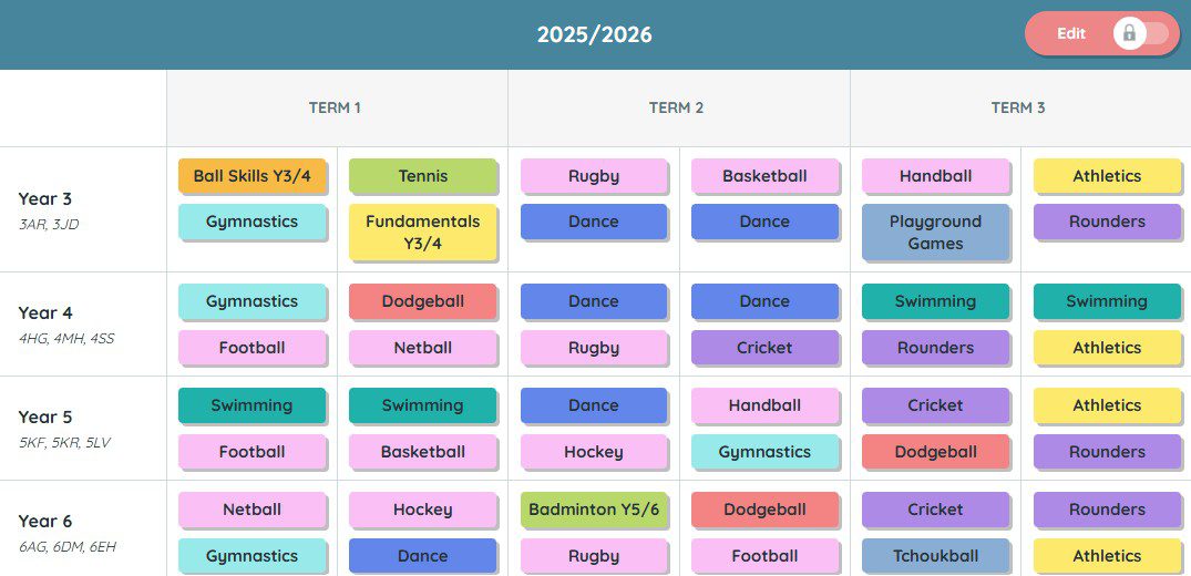 Throughout the year we will have children who are all attaining their 30 minutes a day of exercise within the school day as well as 30 minutes outside school, including their two hours of timetabled PE a week We will have children who have experienced new sports and activities as well as running the daily mile. Through strong subject leadership and CPD we have staff who are confident and skilled to deliver all areas of PE to a very high standard.Â